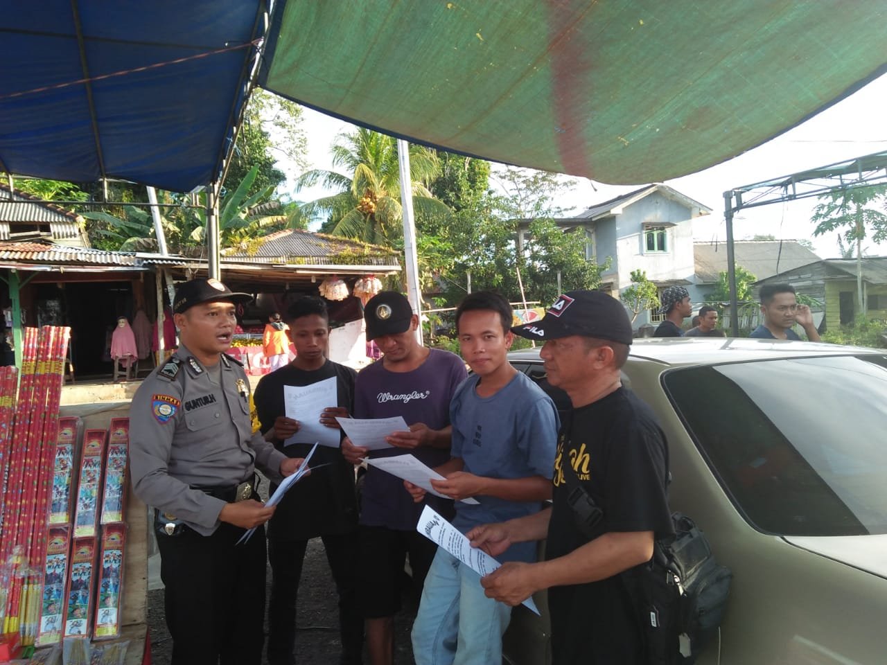 Setelah dilakukan pemeriksaan Bhabinkamtibmas,memasang selebaran himbauan larangan petasan di lapak- lapak jual beli kembang api.