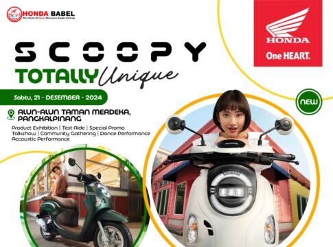 Bertajuk “Totally Unique” New Honda Scoopy hadir dengan berbagai perubahan signifikan dari sisi desain dan fitur modern serta konsepnya dapat mencuri perhatian pecinta skutik di Indonesia khususnya di Bangka Belitung.