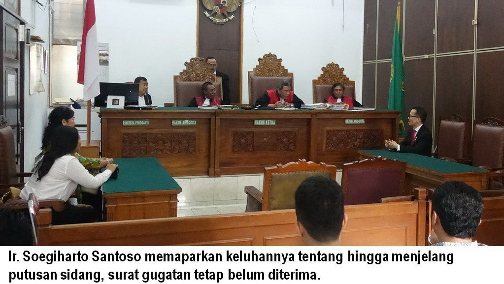 Dalam kesempatan tersebut sekali lagi Ir. Soegiharto Santoso alias Hoky selaku Ketum APKOMINDO yang sah menyampaikan kepada Majelis Hakim tentang Surat Gugatan perkara Perdata No. 633/Pdt.G/2018/PN JKT.SEL. yang hingga telah menjelang putusan masih tetap tidak diperolehnya, padahal Hoky sebagai Tergugat I telah berulang-ulang kali memohon didalam persidangan untuk memperoleh surat gugatan tersebut baik disampaikan kepada Majelis Hakim maupun kepada pihak Pengacara Penggugat dimuka persidangan.