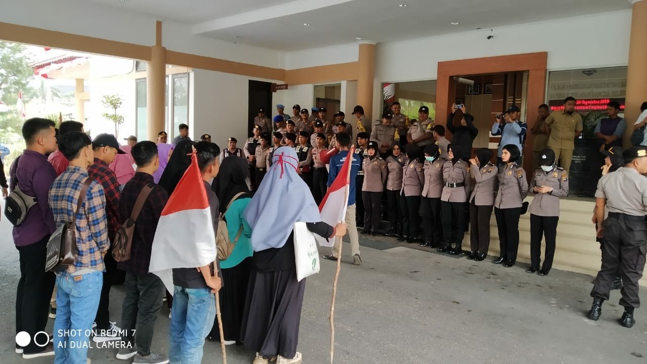PANGKALPINANG, Aspirasipos.com- Aksi damai Masyarakat Peduli Transparasi Dan Demokrasi (MPTD) bersama Mahasiswa berjalan tertip dan aman ,aksi damai yang diikuti oleh puluhan orang itu digelar pada hari senin (23/9/2019).