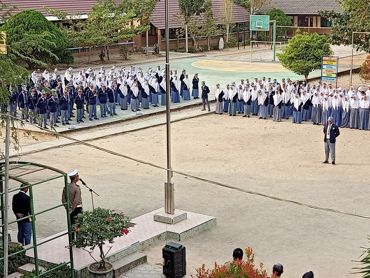 Kasat Lantas AKP Toni Susanto S.H pimpin upacara bendera di SMA Negeri 1 muntok Senin 16 September 2019, Pukul 07.00 WIB