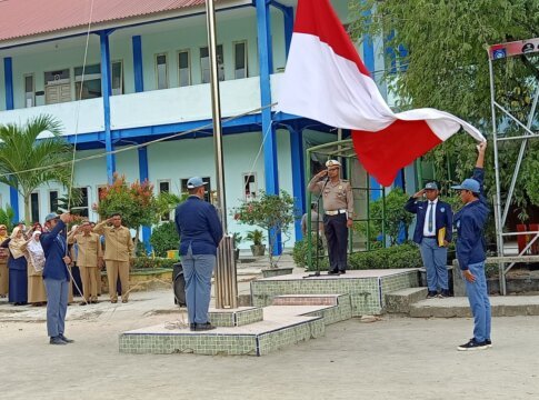 Kasat Lantas AKP Toni Susanto S.H pimpin upacara bendera di SMA Negeri 1 muntok Senin 16 September 2019, Pukul 07.00 WIB