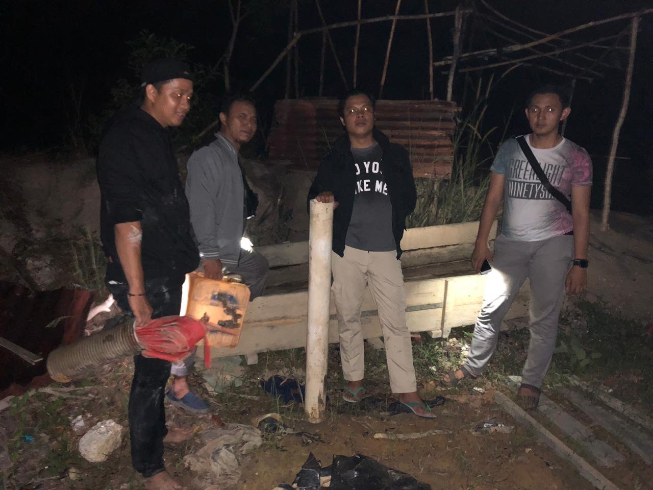BANGKA BARAT,Aspirasipos.com -Polres Bangka Barat kembali mengamankan barang bukti ( BB) dan pengecekan lokasi penambangan pasir timah ilegal di kampung sinar menumbing kawasan kaki Menumbing Kecamatan Muntok Kabupaten Bangka Barat minggu, Kemarin penertiban dilakukan pada pukul 00.30 Wib berlokasi dikampung sinar