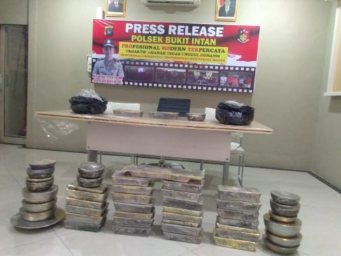 Saat dilakukan pemeriksaan oleh tim gabungan polsek bukit intan didalam mobil didapati timah cetakan home industri dengan berat keseluruhan 607 kg dengan berbagai bentuk dan cetakan.