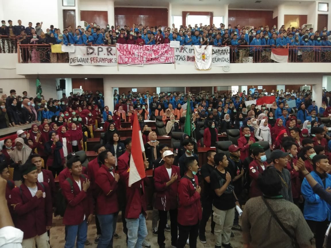 Dalam aksi kali ini seluruh mahasiswa yang hadir langsung memadati ruang sidang yang biasa digunakan oleh anggota dewan untuk menggelar sidang paripurna.