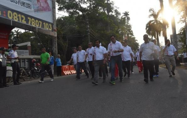 Selain melepas, Wagub bersama Kapolda, Danrem, Walikota, Kepala Basarnas berbaur dan turut serta dalam jalan santai yang mengitari jalan-jalan di pusat Ibu Kota Provinsi Babel tersebut.